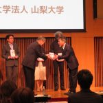 本学の奥田徹理事(教学担当)が同財団の宮永俊一理事長から目録を授与され、プログラム代表者の大槻隆司准教授(全学共通教育センター・全学共通教育企画室長)が事例発表を行いました。